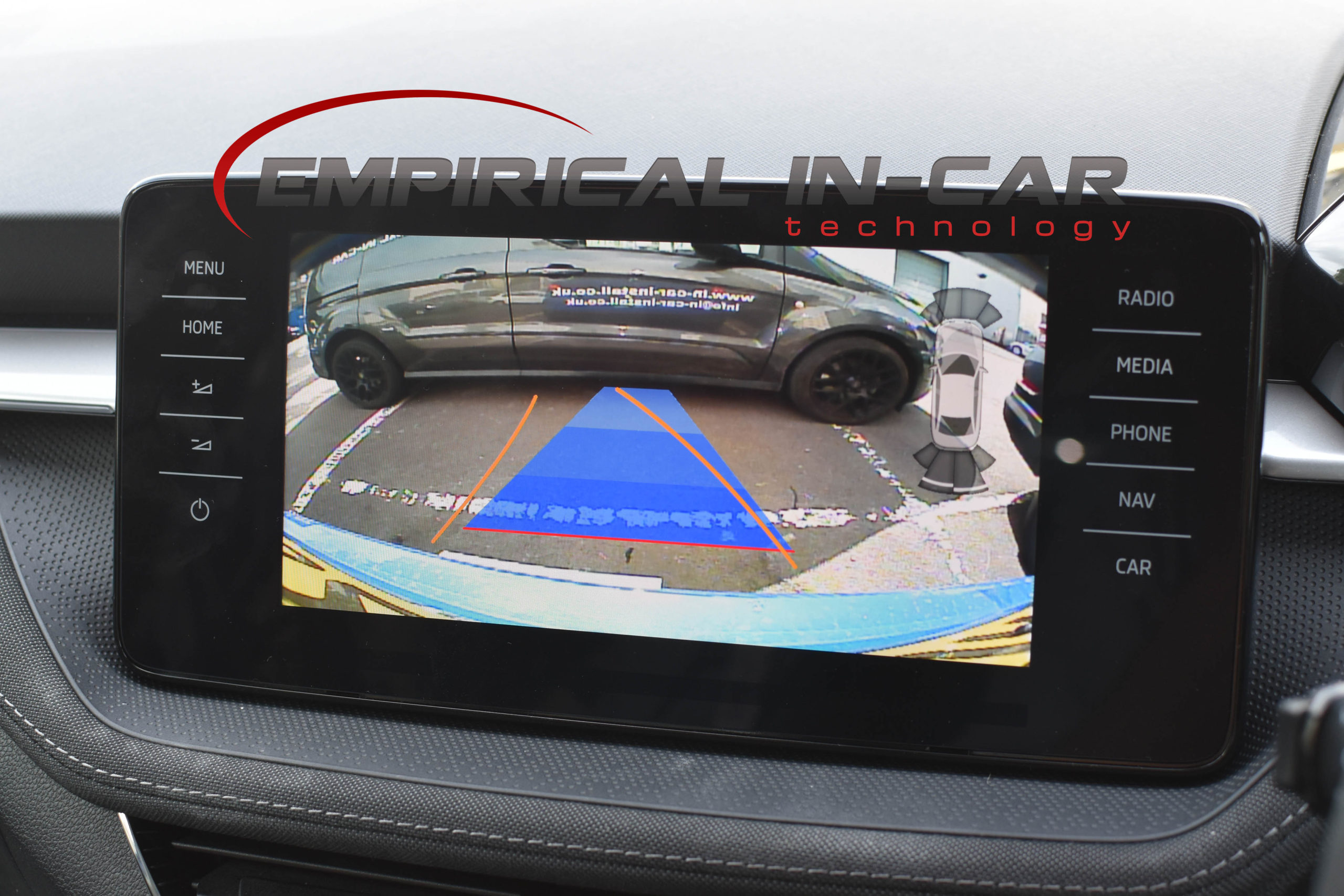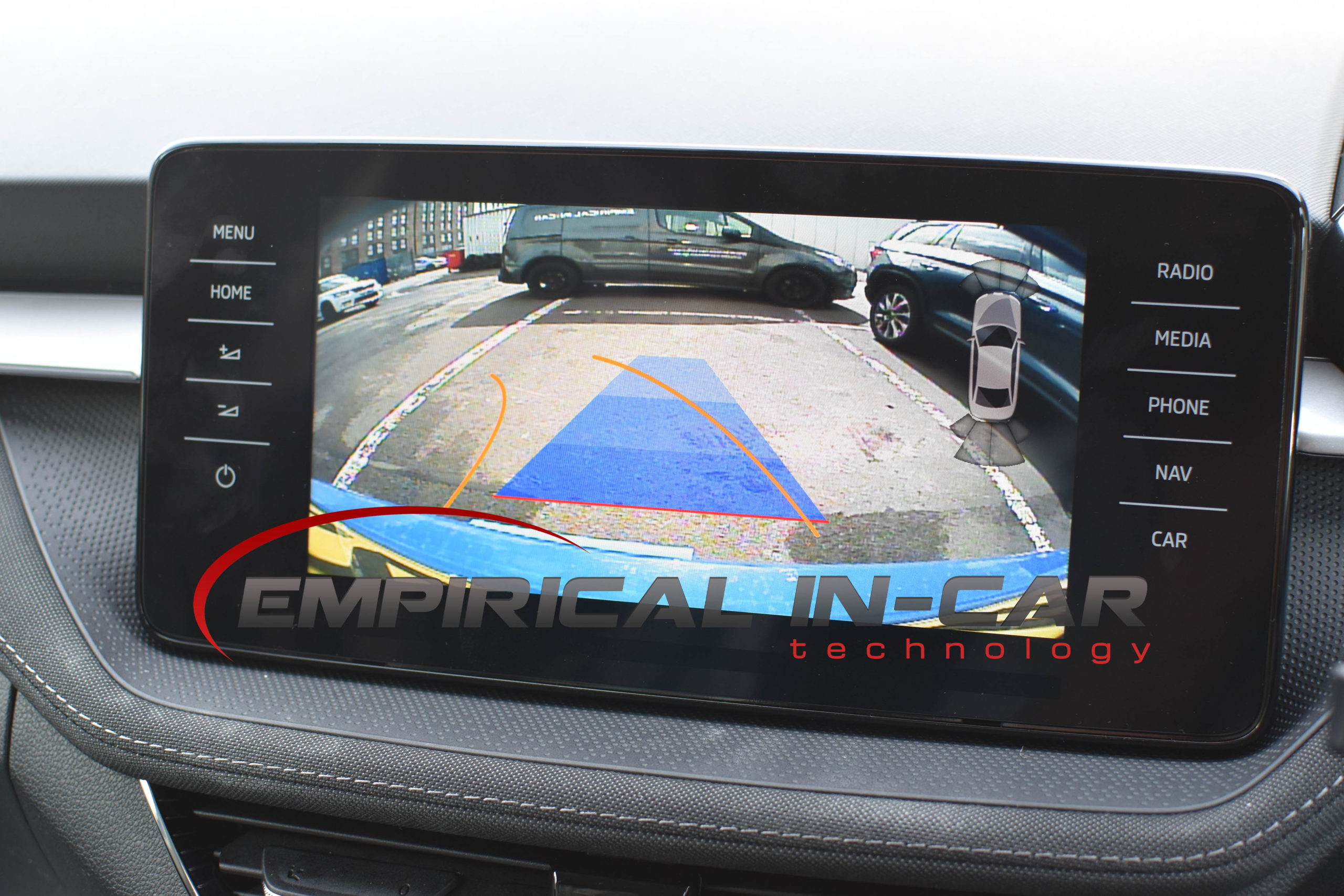 This is our Reversing Camera Kit for the Skoda Fabia from 2022 to February 2024 with 9.2″ Screen. Please note this will NOT Fit the 8″ Screen / Radio that has the two rotary controls either side. This Fully Comprehensive Kit consists of a Plug and Play interface for fitting at the audio unit located behind the Factory Screen and will integrate onto the vehicles Original Display Screen and is Activated when the Reverse Gear is Engaged. This unit will display and project ‘Dynamic Parking Lines’ that will move in tandem with the movement of the cars steering wheel – indicating the predicted trajectory of the cars movement and direction. If your Factory Parking Sensors currently show on your screen then they will show on the left hand side of the camera image on screen. Supplied with our Low Voltage NTSC camera to fit as a direct replacement tailgate handle – giving you a Factory fitted look and style. We supply a USB key – full of installation photos and installation information with the kit.