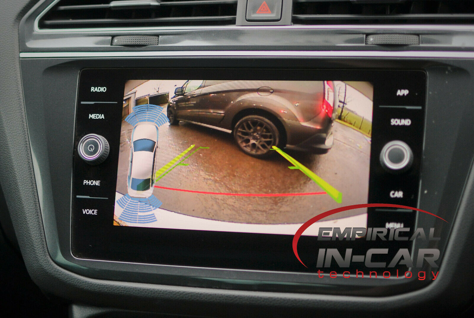 This is our Reversing Camera kit for the VW Volkswagen Tiguan ( 5N ) from 2017 Onwards. This Fully Comprehensive Kit consists of a plug and play interface for fitting at the audio unit in the Glovebox that will integrate onto the cars original Display Screen and is activated when the Reverse Gear is engaged. This unit will display and project ‘Dynamic Parking Lines’ that will move in tandem with the movement of the cars steering wheel – indicating the predicted trajectory of the cars movement and direction. If your Factory Parking Sensors currently show on your screen then they will show on the left hand side of the camera image on screen. Supplied with our Low Voltage NTSC camera to fit as a direct replacement tailgate handle giving you a factory fitted look and style. We supply a USB key with the kit – full of fitting photos and fitting information. We are also available for Technical support, should you need any help or advice please contact us via: Telephone, Text, email or WhatsApp and we will be happy to help in any way we can.